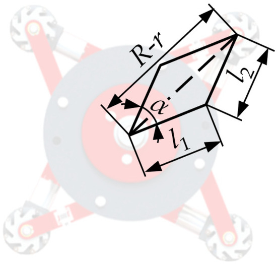 Modeling analysis of the variable diameter module. Note: R is the outer diameter of MWD, mm; r is the wheel radius of MWD, mm; α is phase angle of turntable, rad; l1 is the rotary radius of turntable bolted hole, mm; l2 is the length of wheel brackets, mm.