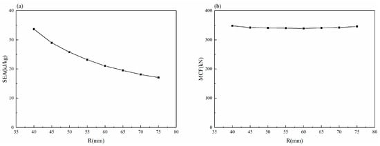 Crashworthiness of the shrink tube varies with the radius: (a) the SEA; (b) the MCF.