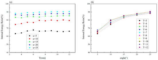 The change trend of internal energy ratio of different shrinkage tubes: (a) thickness change; (b) cone angle change.