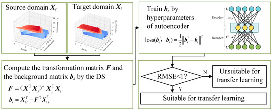 The RMSE is used to measure the appropriateness of transfer learning for the reconstruction vector bs′. When the RMSE is less than 1, the spatial distance between the source and target domains is small and suitable for migration. When the RMSE is greater than 1, the spatial distance between the source and target domains is large and not suitable for migration. Figure 11 shows the framework of spatial correction.