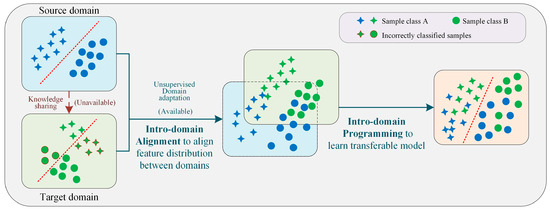 where cov (−) is the covariance matrix; and Es and Et shape unit matrices equal to the source domain Xs and the target domain Xt, respectively. After feature transfer via intra-domain alignment, intra-domain programming learns a nonparametric transferable model of the target domain.