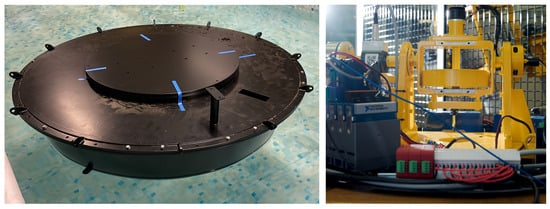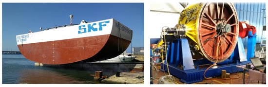 Full-scale ISWEC device during the installation phase (right) and gyroscope mounting process (left). The device was developed by the Politecnico di Torino, Department of Mechanical and Aerospace Engineering.