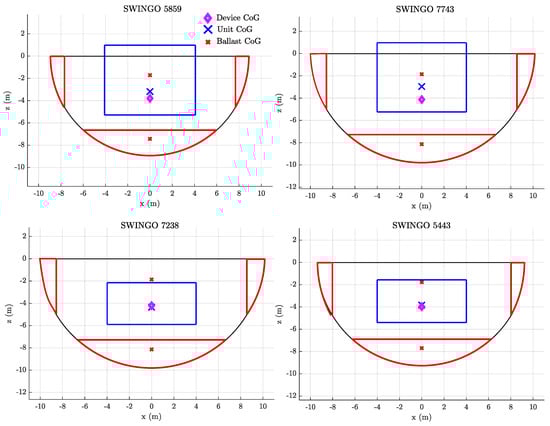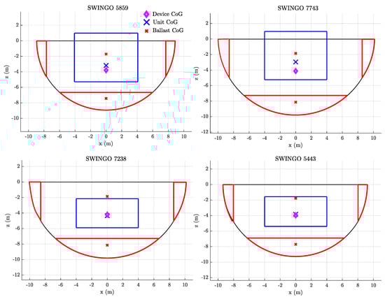 Table 1 compares the ISWEC and SWINGO systems, highlighting that the ISWEC, due to its floater design, functions as a pitching technology. Its gyroscope system is activated exclusively by floater oscillations along the y-axis. For this technology, mooring is a critical component, as it must allow the floater to self-align with the incoming waves. In contrast, the SWINGO is designed to intrinsically overcome this issue. The mooring system’s primary role is to keep the floater in place, as wave directionality does not significantly impact the system’s performance. This is due to the floater’s shape and the multi-axial coupling enabled by the gyropendulum technology.