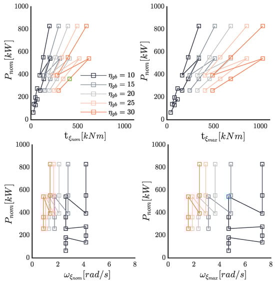 So far, power computation is purely performed in terms of gross power; nonetheless, the SWINGO system presents a set of sources of losses, discussed in the reminder of this section. The losses in the system play a significant role in determining the optimal configuration of the SWINGO device, particularly due to their impact on the flywheel velocity, . While increasing the flywheel velocity can enhance the system’s performance by increasing the gyropendulum momentum, it also introduces losses due to the contact between the shaft and its support, i.e., the bearings. These losses should not be overlooked, as they can affect the overall efficiency and power output of the SWINGO system. On the basis of this, the net power can be defined from the mechanical power, generated by the motion of the gyropendulum system, as follows:
