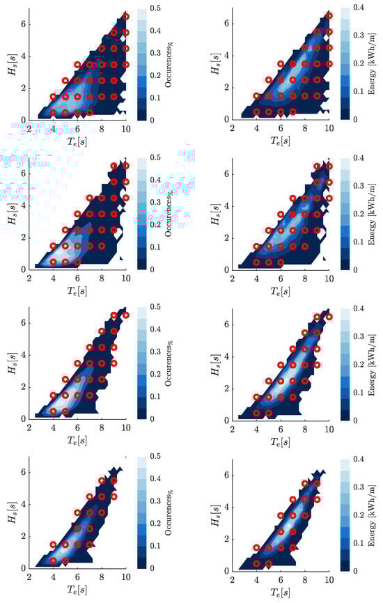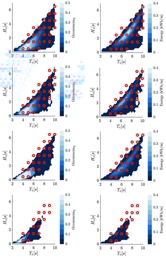 This section aims to introduce the sites of interest, in terms of the characterization of the wave resource for two selected locations. For the upcoming analysis, i.e., results in terms of performance and productivity of the proposed IRM WEC devices, it is relevant to describe the installation site in terms of overall available energy, occurrences, and power associated with each wave. A high relevance is reserved to the study of the directionality of each wave in the scatter table, since it can impact significantly the power extraction.