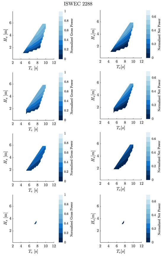 Gross and net power metrics of the ISWEC 2288 for the four considered directions: , , , and .