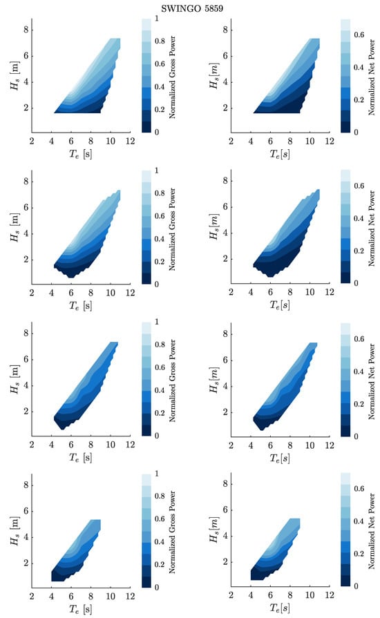 Furthermore, Figure 28 illustrates the gross and net power matrices of the SWINGO device 5859, designed for the Danish site.