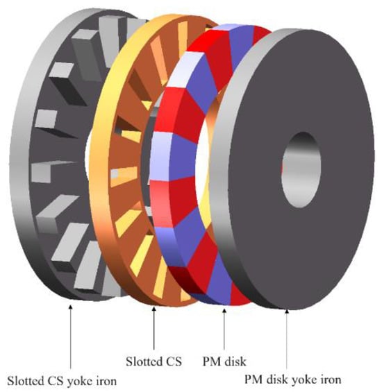 - The yoke iron of the PM and slotted CS disks is too thick to cause magnetic saturation; meanwhile, the effect of yoke iron magnetization on the electromagnetic moment is ignored.