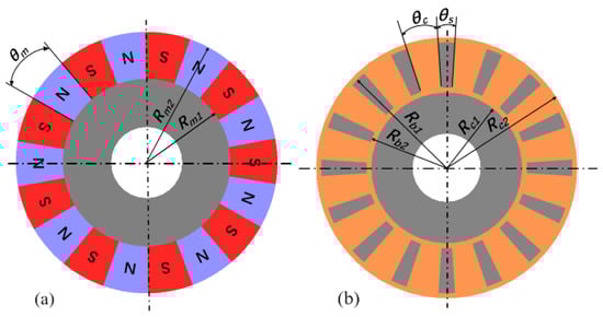 where m is the number of slots in the slotted CS, θc is the pole arc angle of the conductor, θs is the angle of a fan-shaped slot (see Figure 2b).