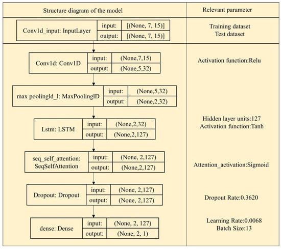 For constructing the prediction model, an integrated CNN-LSTM-Attention architecture was employed. The CNN layer effectively extracts local features from time-series data while capturing the long-term dependencies within it. The attention mechanism layer further enhances the model’s identification of key time-series segments, thereby enhancing prediction accuracy. However, this deep learning model involves a multitude of parameters and hyperparameters, such as the learning rate, batch size, number of units, and dropout rate, which must be carefully tuned to optimize model performance.