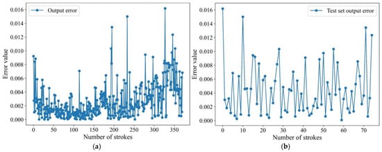 The prediction errors of the CNN-LSTM-Attention-PSA model are shown in Figure 14. Specifically, Figure 14a presents the prediction errors for all samples, and Figure 14b presents the prediction errors for the test samples. In the figures, all sample prediction errors do not exceed 0.0175 mm, with a total wear amount of 0.42 mm, demonstrating the strong robustness and reliability of the CNN-LSTM-Attention-PSA model in RUL prediction.