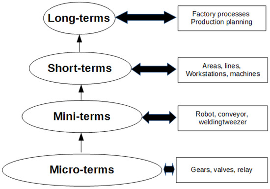 In our previous work [24], we introduced two new levels of data below the short term: the miniterms and the microterms. The miniterms would be placed in the layer immediately below the short term, see Figure 1. In [24], we use the concept of miniterms as the time in which a part of the machine has trouble doing its task, that is, it is a subdivision of the working time. The division of the working time of a machine into miniterms is conditioned by the utility given. In [24], we have used it for predictive maintenance, and therefore, the division is conditioned by the ease of replacing that element in an eventual failure prediction.