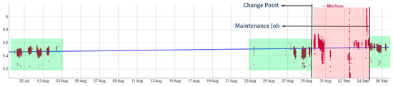 The min-iterm, by definition, is a sub-cycle time and should be only used for production improvement. However, in [24], it is shown that when the deterioration of a mini-term occurs, it is an indicator that the end of the useful life of that component is near and the shutdown of the machine is imminent. The deterioration of the mini-term results in a deterioration of the cycle time and affects all the upper terms of the pyramid of cycle times shown in Figure 1.