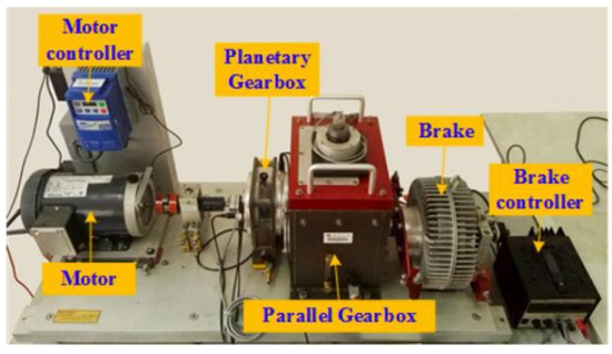 The bearing failure experimental device from Southeast University is shown in Figure 5. The vibration signals collected are created at a motor speed of 1800 r/min and a sampling frequency of 12 kHz. The experiment will be carried out under three conditions: outer ring, inner ring, and composite fault. The outer ring fault frequency is 70 Hz, and the inner ring fault frequency is 188 Hz. The specific fault types are shown in Table 1 [30]. In order to effectively verify the effectiveness of this method, a data set with large noise interference is used, so the weight index MO is uniformly set to 1.5. All data sets used in Section 5 are from the gearbox data set provided by Southeast University [30].