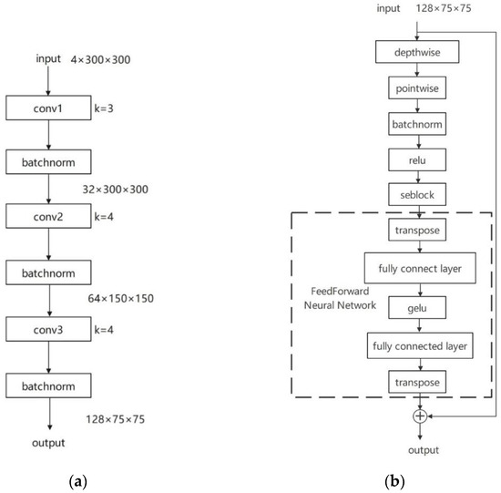 Figure 5. Specifically, the encoder first processes the image using standard convolutional layers sequentially, where each convolutional layer is followed by Batch Normalization and nonlinear activation functions. This approach aids in accelerating convergence and enhancing the stability of the model. The 128-channel image of size 75 × 75 is then fed into the residual block, which integrates large kernel convolutions and residual connections for feature extraction, as depicted in