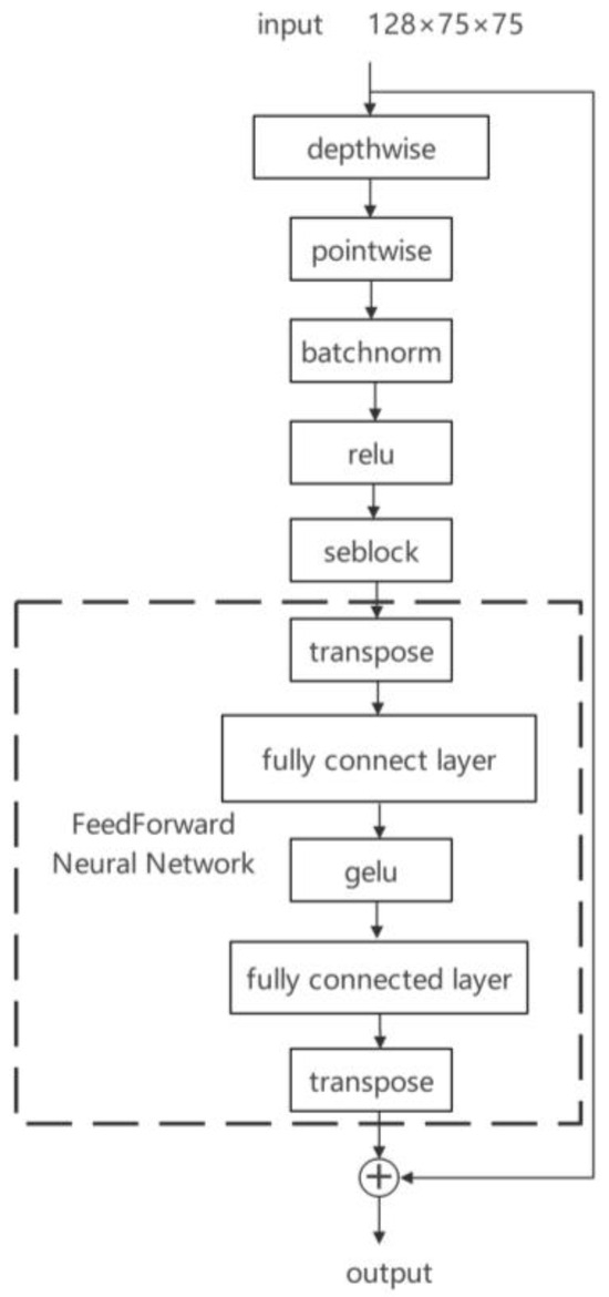 To further enhance the model’s representational capacity, nonlinear transformations are applied to the input features to capture complex relationships across different levels of features, integrating global information from the model’s input data. Building on the efficiency of depth-wise separable convolutions in reducing model parameters and computational load, a feedforward neural network (FNN) is employed, as illustrated in