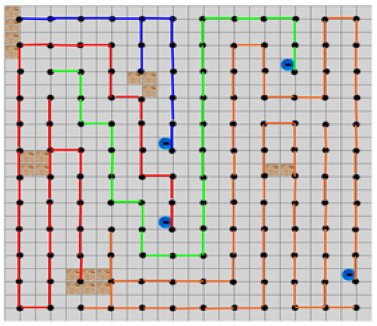 Robots can take many manifestations which include robots operating at ground level [using two-dimensional CPP] to unmanned aerial vehicles (UAV) [using three-dimensional CPP] where the goal is to optimize the operation of multiple UAVs while avoiding collisions [5,6]. We defer a discussion on related research to Section 2. In this study we are interested in the operation of multiple mobile robots operating in concert, the goal being to autonomously optimize the paths taken by the mobile robots within a DOE to achieve a pre-defined task [2] while implementing the avoidance of static and dynamic obstacles [4].