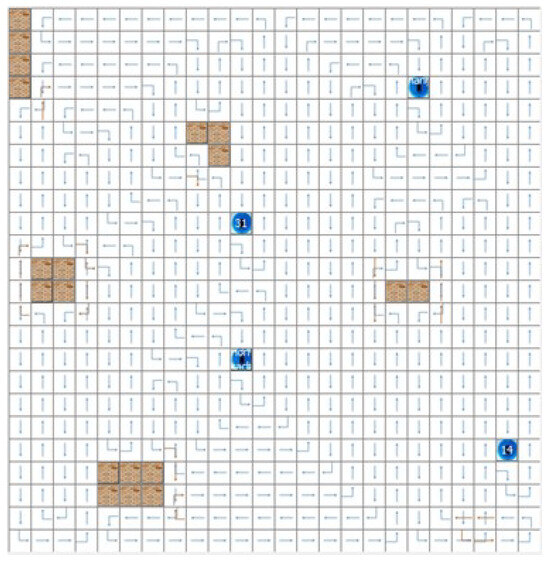 Other techniques, including reasoning and the crowd-drawing effect, can be applied in ‘real-world’ applications of single and multiple robots in multiple decision making [3,60]. There is an interesting correlation between the discussion in [60] and the social force model [61], crowd dynamics, and the selection of an available route(s) during evacuation in emergency situations [62]. A robot(s) with a priori knowledge of the architectural layout of an area may be a useful guide.