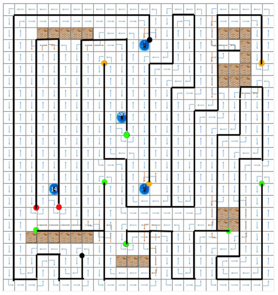 Such a problem requires ‘task scheduling’ which features in [78] where robot scheduling is in flexible manufacturing systems; however, as with other studies, the development of a scheduling system in a real implementation environment with related practical factors is identified as future work. Task scheduling is not currently considered in the proposed approach to CPP as presented in this study. This problem may be realized in, for example, a use-case where two robots (i.e., robots A and B) are tasked with ‘picking’ a product (i.e., the same product) from the same location(in a warehouse DOE) at the same time. In such a use case, there is a requirement for task scheduling to be added to, and incorporated into, the Multi-ST model.