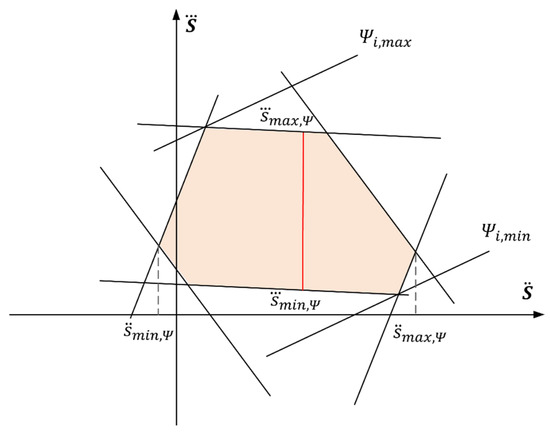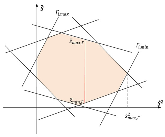 Taking Δs as the step size, we sample along the path length, dividing the interval into N segments and N + 1 grid points . For each grid point , we identify a series of surface regions with varying shapes. We arrange these surface regions in order to form a four-dimensional state space defined by the boundaries of these surfaces. Within this high-dimensional space, motion is constrained independently of the initial conditions. When mapping from the subspace of to the subspace of , we observe that the set of linear inequalities formed by second-order constraints delineates a convex polygonal region, as shown in Figure 1.
