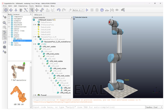 Graphical result of UR5 modelled in CoppeliaSim.