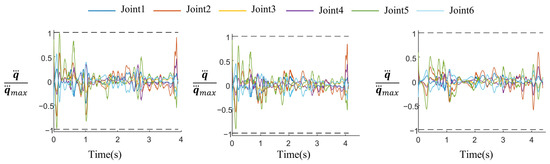 The generation process for the test path is as follows: firstly, five nodes are randomly selected within the range of [−80°, 80]6, and from these nodes, 200 equidistant nodes are generated. Then, cubic spline interpolation is applied to these equidistant nodes to form the joint space path (s).