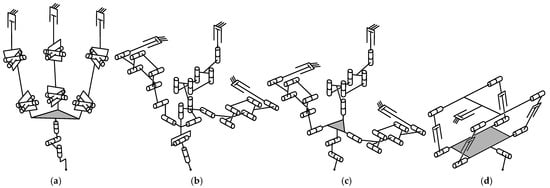 - Multiple parallel mechanisms connected in series (Figure 1a). These systems are also known as parallel–parallel manipulators [17].
