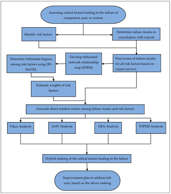 Based on the above ranking, the improvement plan prioritized addressing major failure modes. Refer to the following Figure 1 for the hybrid MCDM-based FMEA model adopted in this work.