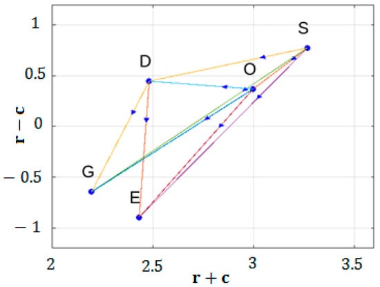 In the above Table 6, factors S, O, and D make up group I (the most significant factors), as they affect ( > 0) the rest of the factors (they are the causes), while factors E, G correspond to group II (independent factors), as they do not impact others ( < 0). An INRM of the five risk factors can be utilized to monitor the influence relationship (refer to Figure 3). S influences both E and G, as indicated by the INRM, and it is positioned in the top right corner, indicating that it has highest weights. The DEMATEL outcomes are highly consistent with the seven experts’ viewpoints. The anticipated expenses are strongly associated with the defect’s severity, its measurability, its incidence prior to the issue appearing, and its influence on the environment. Furthermore, the environmental harm will be more severe if the fault has higher severity. Prospective expenses are strongly influenced by environmental protection.
