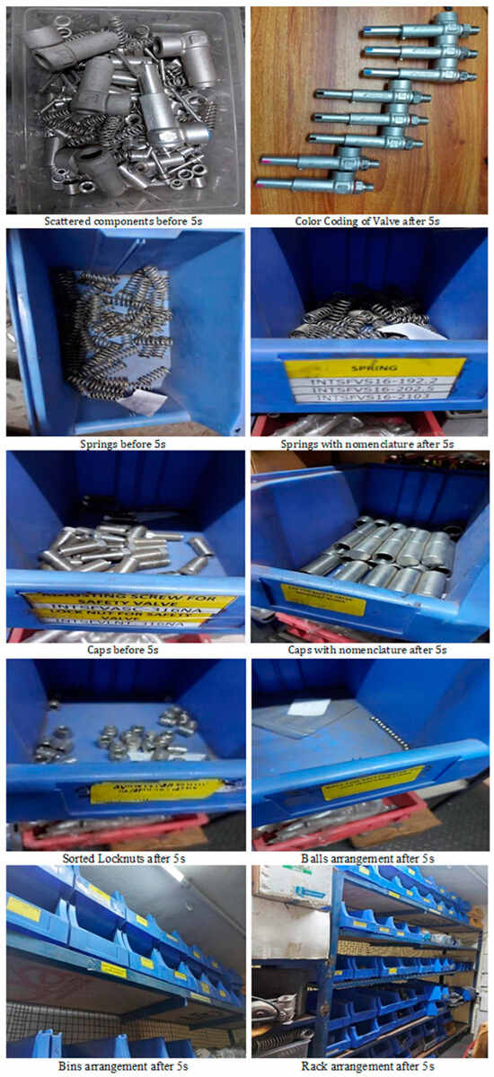 A process in which a material is cut to a desired final shape and size by a controlled material-removal process leads to defective machined parts (), which impacts the rejection or failure of the pressure valves. This is due to the imprecise dimensions of purchased components such as the spindle for the safety valve, nozzles, and nozzle guides. So, as planned, we suggest that the quality control department mandatorily inspects the finished material at the vendor’s workplace before dispatching to the machining area. Similarly, vendors are instructed to appoint trained workers to operate the machines and ensure that the dimensions are correct and precise. Similarly, the primary cause of pressure valve rejection/failures can be attributed to workers’ errors in selecting mating parts () on the assembly line. Here, the recommended actions are to focus on material sorting, color coding, and organizational standardization. To address this, mating parts are categorized, stored in separate bins, and accurately labeled.