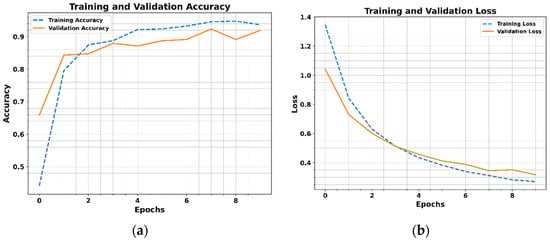Kumaresan et al. [] method training and validation (a) accuracy and (b) loss, against the number of epochs.