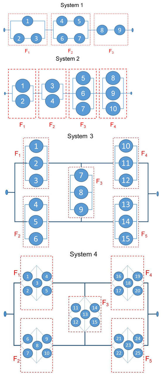 As we have already mentioned, one of the primary goals in reliability analysis is to mathematically represent the logic underlying a system. Assessing system performance, even for simple structures, can be challenging, making it essential to develop effective methods for modeling the relationship between the state of the system and its components. Unlike some of the ML algorithms, the FA-LR-IS algorithm [1] not only classifies the system as operative or failed; it provides other useful information. Specifically, the main objective of the algorithm is to estimate the reliability function, that is, the probability that the system is functioning in terms of its unit states as in (1). Finally, a ranking of components can be established according to the importance of every component in the system state. Understanding the importance of a unit as the impact that a one-unit change in the component state has on the system behavior. In [19], we emphasize the importance of using nonparametric regression, which produces estimators with good asymptotic properties, although these estimators are not necessarily monotonic. In high-dimensional scenarios, a methodology is proposed that combines factor analysis, logistic regression, and isotonization. The combination of factor analysis and logistic regression was chosen for the following reasons: First, we consider factor analysis for dimensionality reduction, because in complex systems with a large number of components, the total number of variables in the regression problem we aim to solve is very high, many of them highly correlated [20,21,22]. In this context, factor analysis reduces dimensionality by extracting latent factors that summarize the original data. This prevents issues like multicollinearity and overfitting while maintaining the key relationships in the data. Second, in our practical application we are interested in predicting the probability that the system is either operative or in failure given a particular configuration of component states. As known, logistic regression is ideal for predicting binary outcomes. It is interpretable, efficient, and well suited for modeling the nonlinear relationships that are underlying in our problem. Finally, to ensure practical relevance and interpretability of results, the model is expressed in terms of the original variable by applying an inverse transformation, which is possible given the mathematical formulation of the combination of these two models.