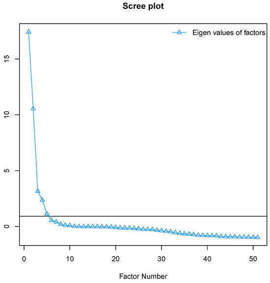 - Apply factorial analysis (FA): we apply a FA algorithm to the scaled dataset and transform the data into a reduced set denoted as with dimensions , where . Here, , and is the FA coefficient-matrix of dimension .