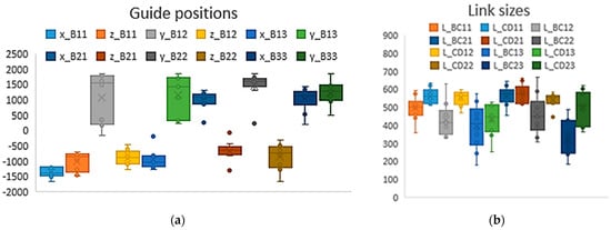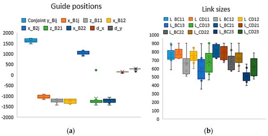 where , , , are coordinates of the joint centers D, which in accordance with (18)–(23) are defined as follows: