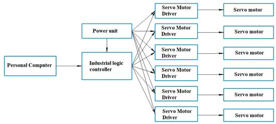 A controller has been selected that provides precise control of the system and maximum safety for the patient. To control the prototype, an industrial logic controller OWEN PLC 210 (LLC "Production Association OWEN", Moscow, Russia) was used. The controller uses the development environment (IDE) CODESYS V3.5. CODESYS supports IEC 61131-3 programming languages and the additional CFC language, which allows to develop a human–machine interface and configure data exchange with devices. To control the robot system, a control interface for the operator was created and visualized. Data exchange with servo motor drivers are carried out via the RS-485 interface.