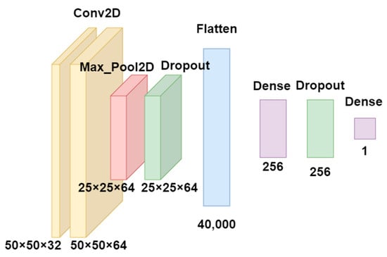 Both images were processed using convolution layers, max-pooling layers, and three fully connected layers for feature extraction and classification. The model performed binary classification, utilizing the sigmoid activation function and the binary cross-entropy loss function during training.