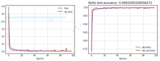 Loss and accuracy of the best model (addition GASF-GADF) for the belt dataset.