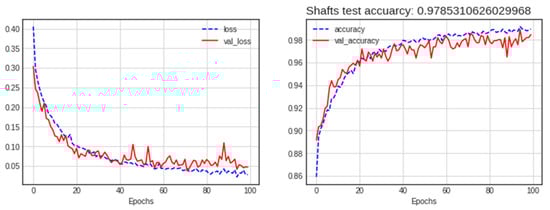 Loss and accuracy of the best model (concatenated GASF-GADF) for the shaft database.