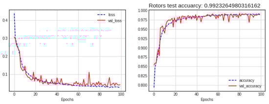 Loss and accuracy of the best model (average RP-GADF) for the rotor dataset.