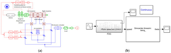 Modeling of the joint simulation. (a) the model in AMESim; (b) the model in Simulink.