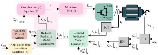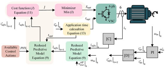 The employment of these VVs also permits reducing the predictive model (9) and the cost function (11) (Figure 5), simplifying the control scheme and reducing the computational burden in relation to the standard version. Since the secondary currents can be regulated in open-loop mode with the null-average voltage production provided by the VVs in the secondary subspace, the following machine model and cost function can be employed: