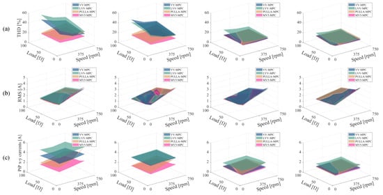 - When the impedance of the stator becomes higher, the MPC strategies that use fewer voltage vectors (e.g., VV or LVV) can be more adequate since the THD becomes similar to MV5 but the switching frequency is reduced. It can be said that there is no mandatory need to use more switching states to satisfactorily reduce the value of the x-y currents.