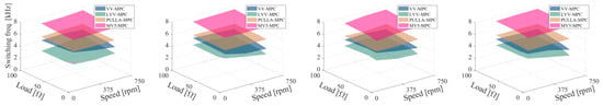 - Switching losses are lower in static multi-vector MPC strategies (e.g., VV and LVV) and they do not depend on the stator parameters but on the number and types of voltage vectors that are applied in each sampling period.