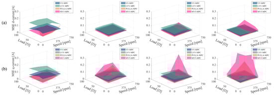 To characterize the current quality, the THD and PtP values of the x-y currents have been used in this electric drive evaluation. In the same manner, to evaluate the effectiveness of the current tracking in steady state, the mean square error (MSE) of the main components is employed. The MSE of the d-current and q-current describes the adequacy of these currents to their references, related to flux and torque production, respectively. In this regard, the influence of IF4 and IF5 in the regulation performance should be analyzed.