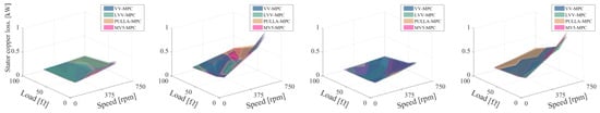 - Although Joule losses in the machine are dominant, the reduction in the switching losses in the case of LVV-MPC can be considered as an interesting benefit in high-speed/torque conditions.