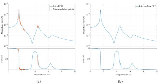 (a) Initial FRF obtained in Section 3.1 and the selected measured data points for the use in (b) the intermediate FRF.