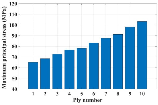 Maximum principal stress profile with ply number.