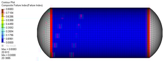 The failure of the COPV was evaluated using the Tsai–Wu failure theory, commonly used as a failure criterion for structures with anisotropic materials [30]. The Tsai–Wu failure theory for a 2-D plane stress state is given by Equation (8).