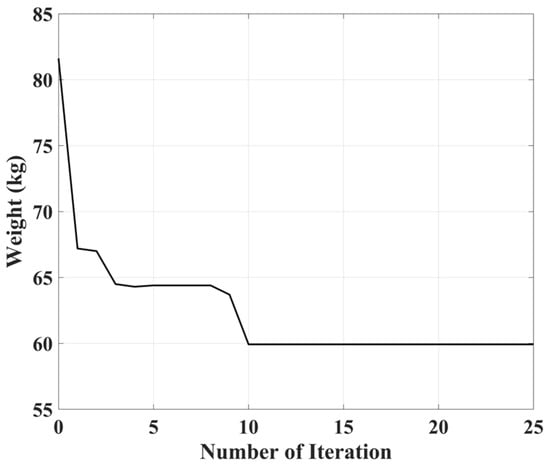 We defined the parameters required to use the genetic algorithm to perform weight minimization. Furthermore, 20 populations were produced per generation, and the iterations were limited to a minimum of 20 and a maximum of 50 and to stop terminating the search if the weight did not improve after 15 generations.