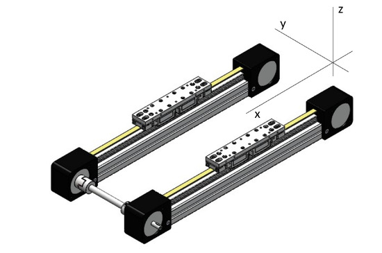 The movement of the worktable is ensured by two linear actuators, and this type of configuration is commonly known as 2x, as shown in Figure 12.